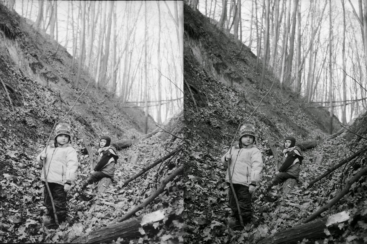 Korzystając z okazji dwa słowa o różnicy między skanem z odbitki i z negatywu. Dla ułatwionego zadania połączyłem dwa pliki w jeden obrazek, wyciąłem tylko ramki: